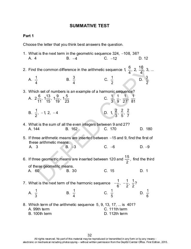 Summative Test Summative Test Part I Choose The Letter That You Think Best Answers The Question 1 What Is The Next Term In The Geometric Sequence Course Hero